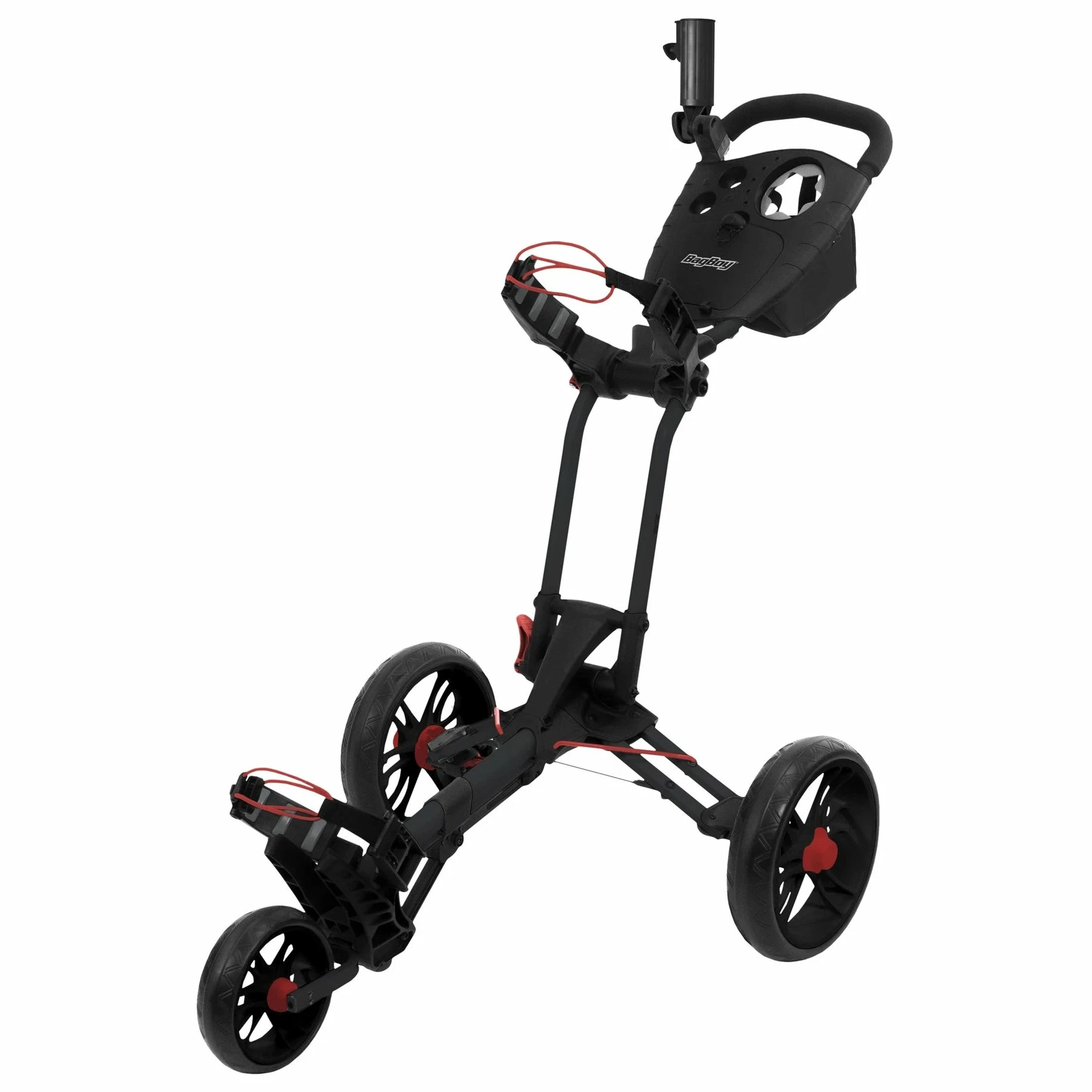 Transport your bag around the golf course with ease with the Bag Boy Spartan XL Push Cart. The Spartan XL features two oversize 13 inch rear wheels and a front wheel that will roll over the course with ease. There is an extra-deep scorecard console with built-in beverage holder and accessory bag under the scorecard console that is useful for storing tees or a cell.