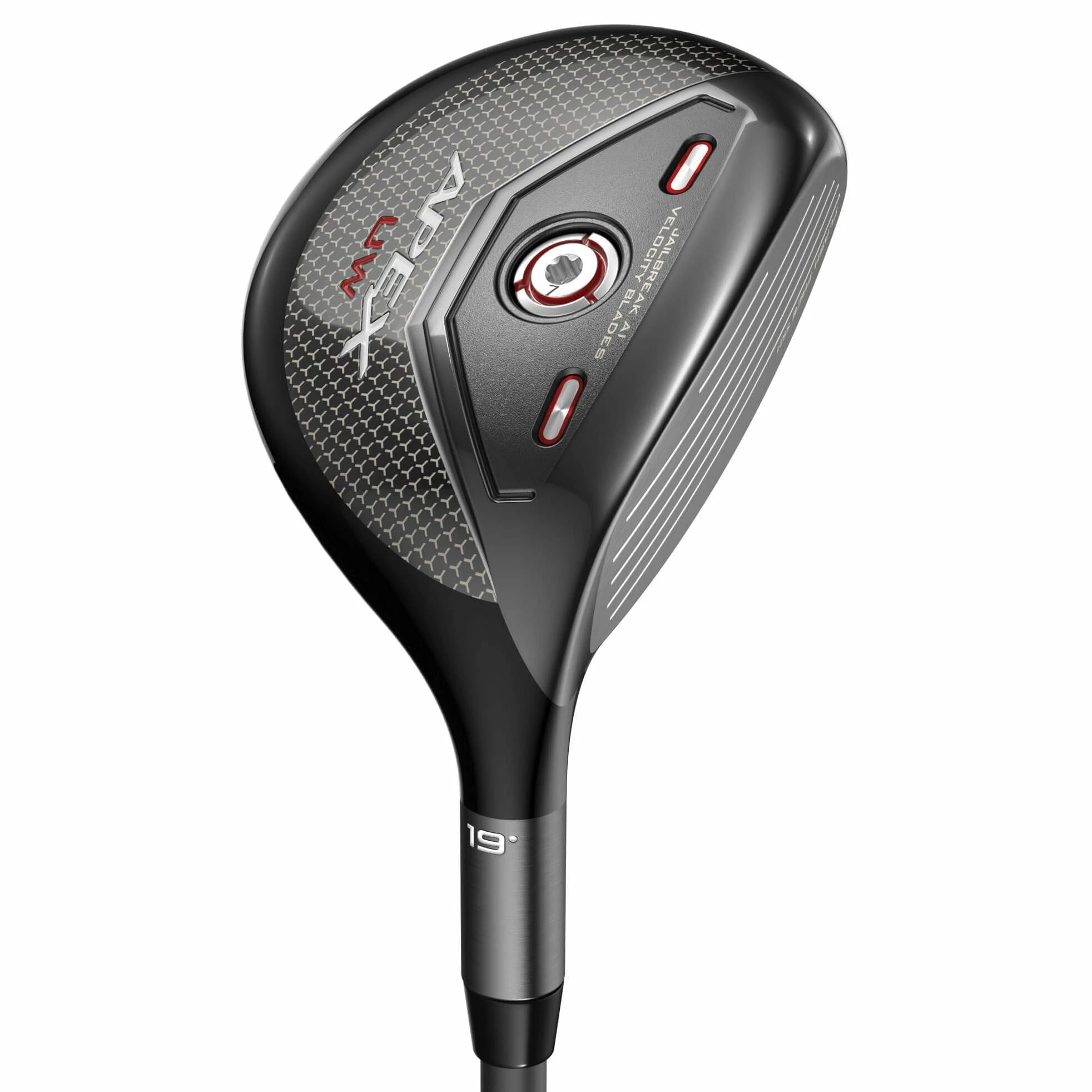 Built from the desires of pro players comes the Callaway Apex Utility Woods. These woods feature the best of higher lofted fairway woods and hybrids for a neutral ball flight. The club head comes with Jailbreak A.I. Velocity Blades that will connect the sole and the crown which allows the forged C300 Face Cup to flex and rebound which will send the ball flying forward with tons of speed. The Apex Utility woods come with an added benefit with Velocity Blades that increase the stiffness near the sole and tungsten weighting are positioned inside for a neutral center of gravity which produces a higher launch and steeper landing angles for increased stopping power and optimized spin rates. The shaft of this club features 100 percent of aerospace materials that provide the right blend of stiffness and stability that better players prefer.