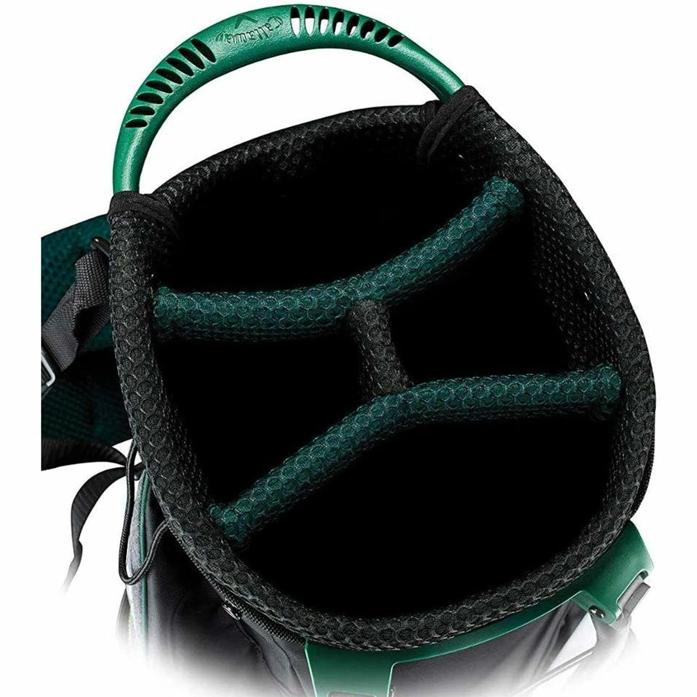 The Callaway Hyper Lite 3 Double Strap Stand Bag features 8 well thought out pockets, including a velour lined valuables pocket and a quick access cell phone sleeve. Our new X-Act Fit strap system will self-balance the bag on your shoulders for a better carry experience.