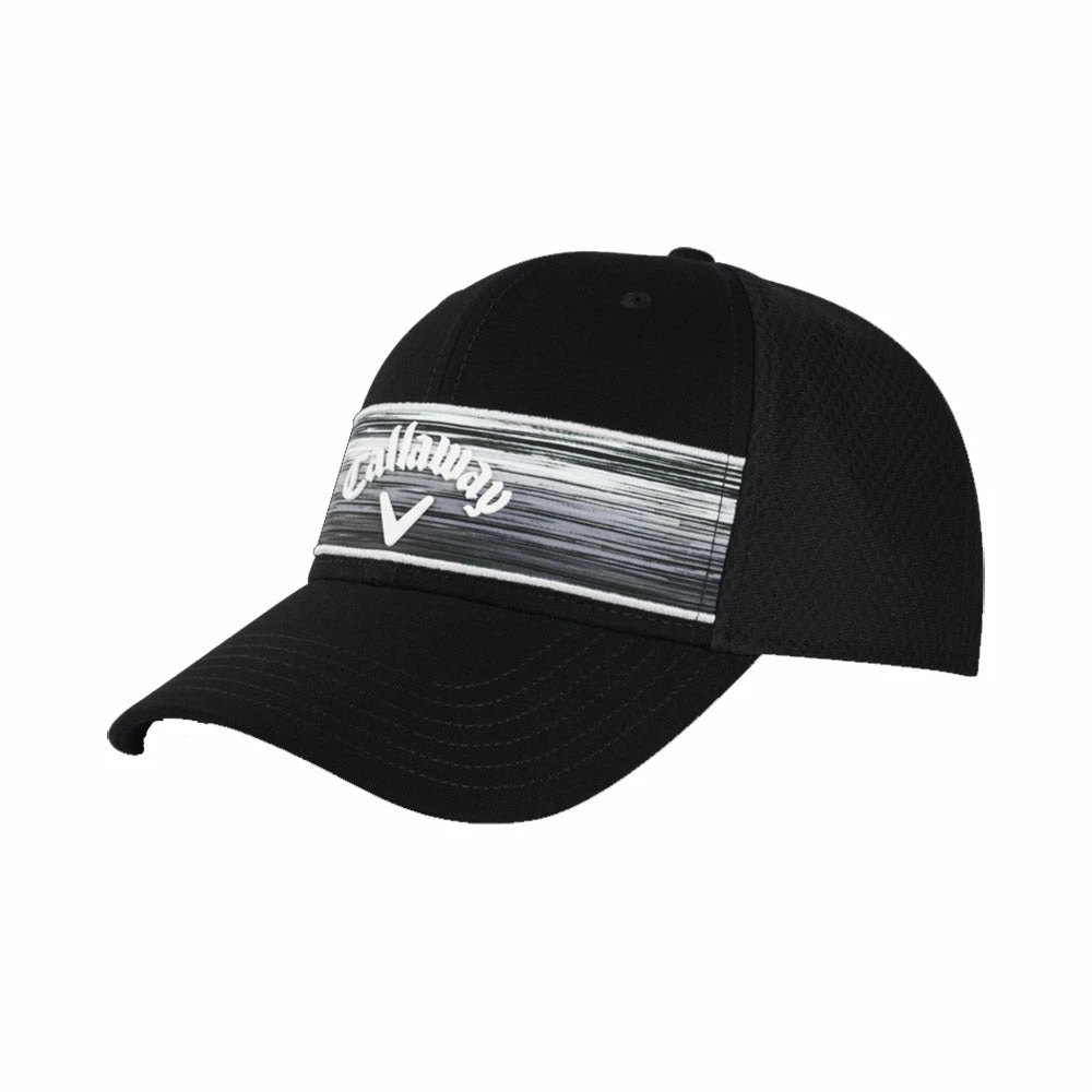Callaway Stripe Mesh Adjustable Mens Cap is stylish and comfortable with snap back closure and applique design. Designed with a cooling sweatband to keep you cool and dry. This cap has a mid- profile structure design and custom logo. The Stripe Mesh will keep you looking good on and off the course.