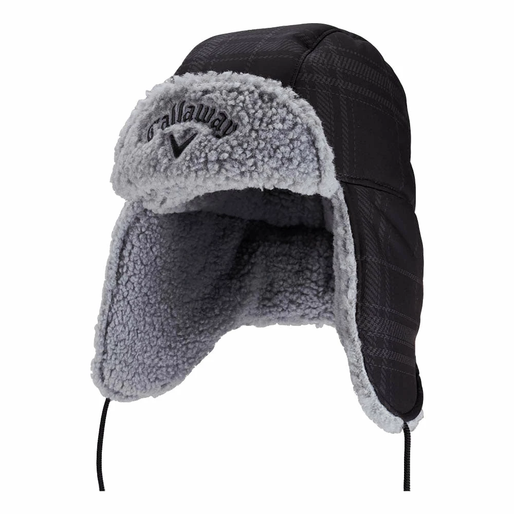 The Callaway Thermal Bomber Mens Golf Hat is the definition of warmth in winter. Designed with a classic trapper style, the Thermal Bomber is internally lined with sherpa fleece for ultimate heat retention against the head. The ear flaps have attached strings to easy tie up and out of the way when not in use. The best feature is the water-resistant outer fabric to really protect you from the elements!