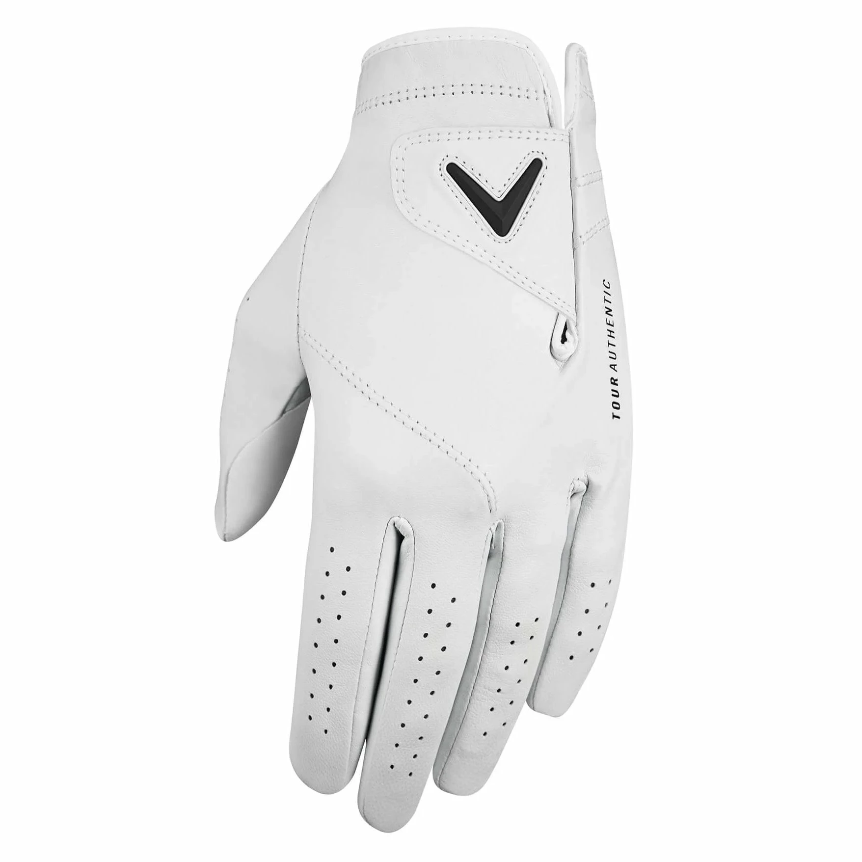 Get optimal grip performance with the Callaway Tour Authentic Golf Glove. This golf glove is built a premium Cabretta leather that is infused with Griptac that provides golfers with the fit and feel of a second skin while providing optimal grip performance. There are strategically placed perforations and Opti-dry technology that keeps your hands dry when the temperature rises.