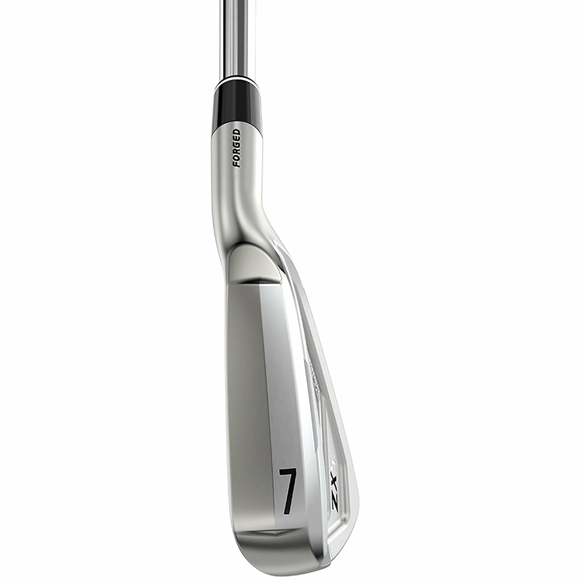 The Srixon ZX5 MK II Steel Right Hand 7-Piece Irons Set delivers fast and pure ball speed like never before. The MainFrame offers variable thickness in the pattern of the grooves, channels and cavities that have been carefully milled into the backside of the face, thus improving flex at impact, boosting COR and lowering the center of gravity for faster ball speed and forgiveness. Crafted with the Srixon dynamic Tour V.T. Sole, the clubhead maintains speed through impact, even if you experience some turf contact behind the ball. Prevent digging with a higher bounce on the leading edge, followed by a lower bounce on the trailing edge that curves away from the turf. The Srixon ZX5 MK II Steel Irons are complete with a deeper, closer set grooves on the 8i through the Putting Wedge, cutting through grass and debris to achieve those cleaner, approach shots and enhance friction in any conditions.