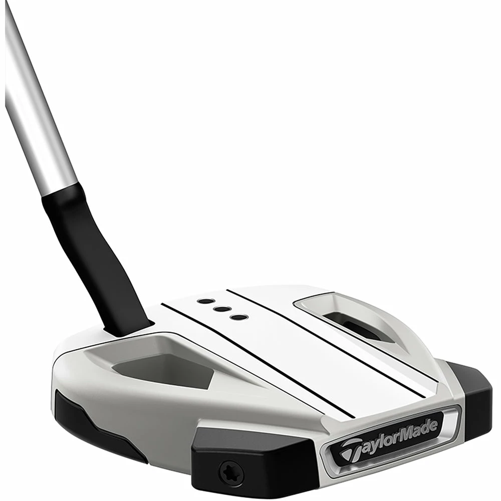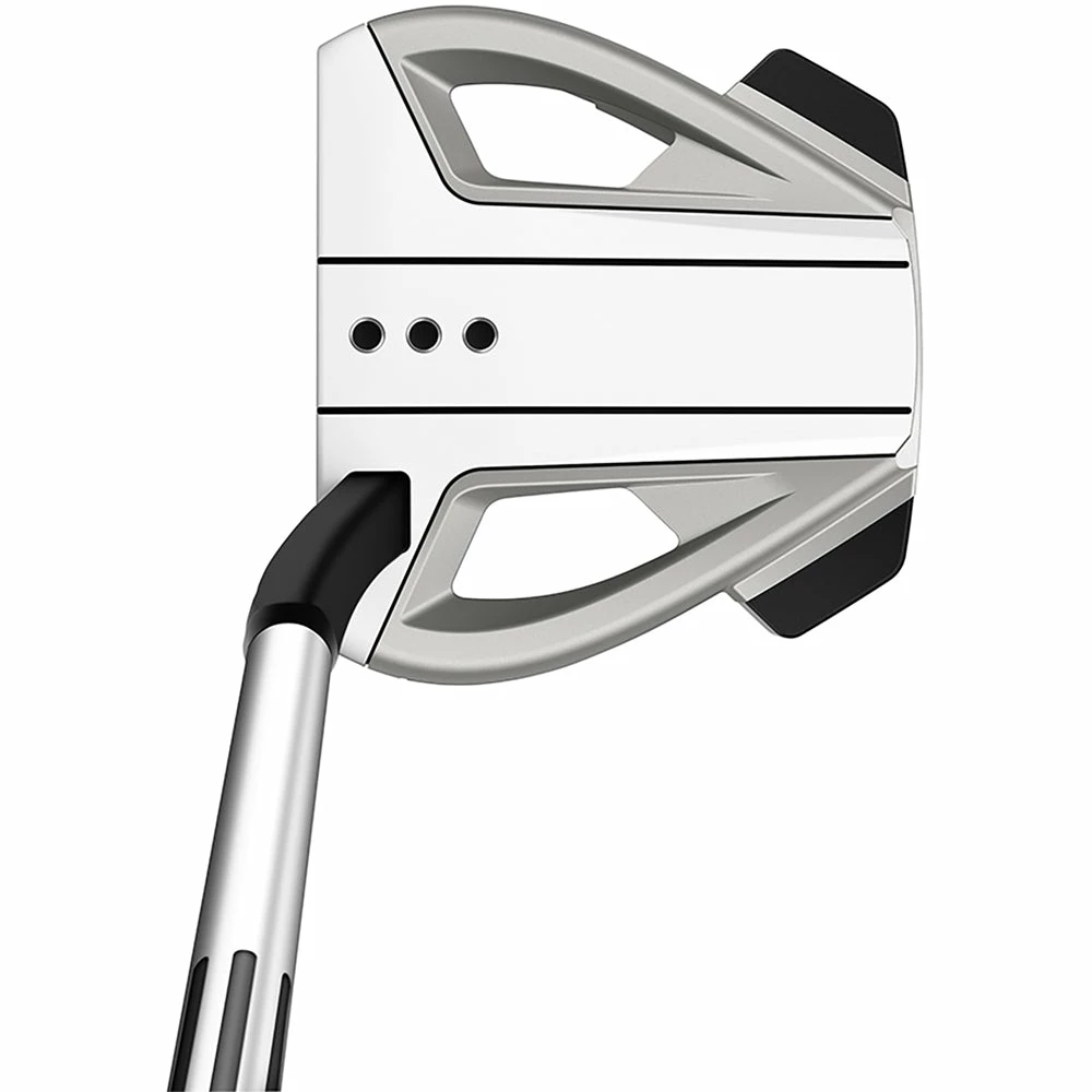 Get confidence and feel with every stroke with the TaylorMade Spider EX Platinum Flow Neck Putter. This putter is built with multi-material construction that consists of heavy tungsten back weights, lightweight aluminum body and heavy steel on the frame. By placing the heavier weights along the outside of a light body makes a deep center of gravity that creates a huge MOI, stability and forgiveness. The Pure Roll 2 insert complements the multi-material construction that creates an optimal forward roll for tracking putts to the hole. The Spider EX has a streamlined head shape and the three dot alignment allows the human eye to see the path of the stroke clearly.