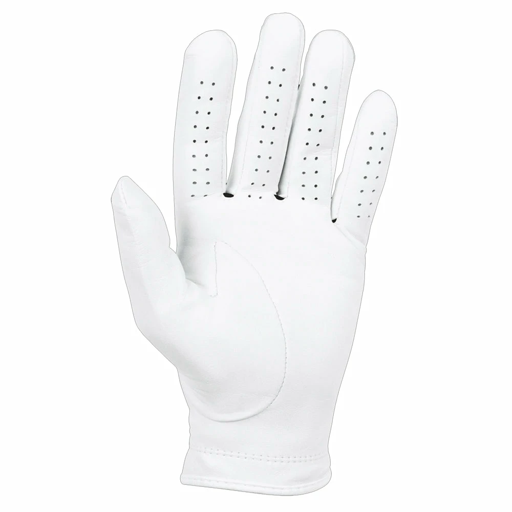 Get the feel of premium quality and durability with the Titleist Perma-Soft Golf Glove. The Perma-Soft provides golfers with seamless comfort and its built with a CoolMax mesh panel across the knuckles that provides exceptional breathability and added support. The durable Cabretta leather and satin reinforcement at the cuff and thumb make this glove highly durable.