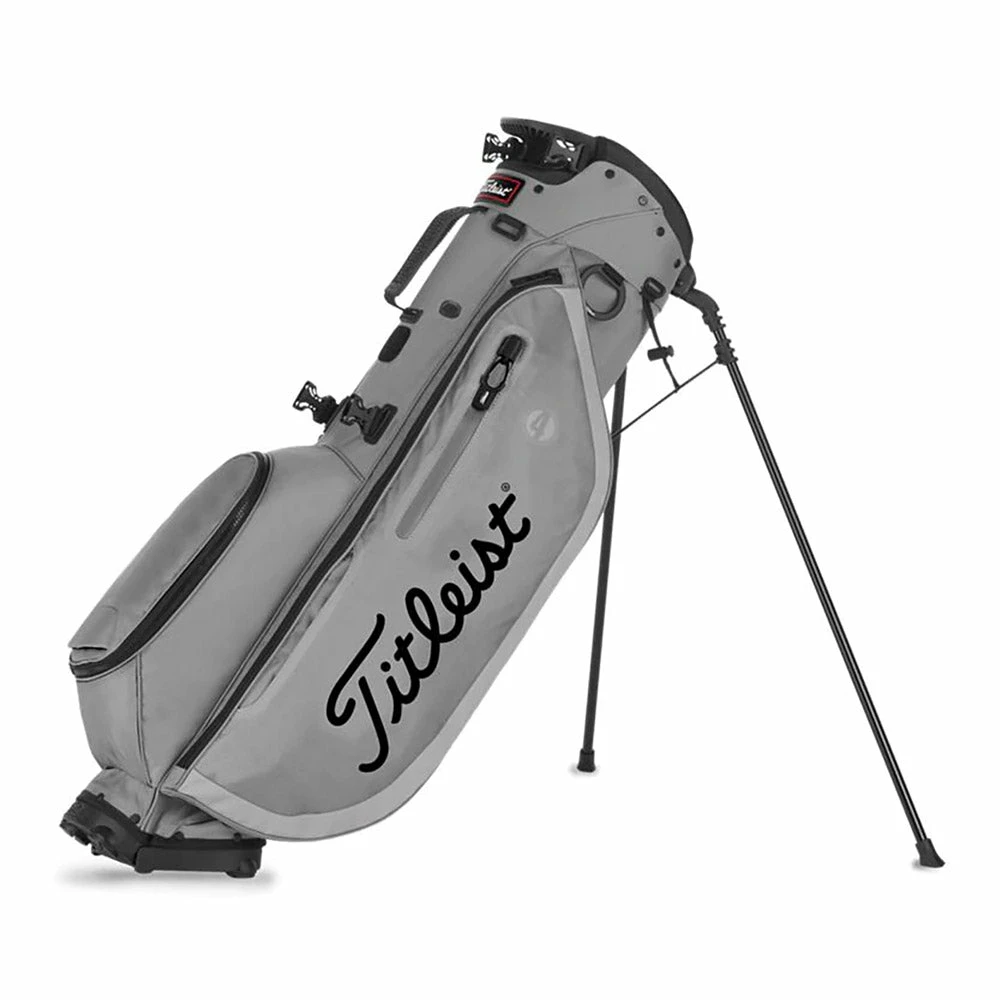 With a lightweight design and premium materials the Titleist Players 4 Stand Bag is a great option for toting your clubs around the course. The Players 4 bag is lightweight and features four full length dividers for your clubs and the lightweight legs and hinged bottom give you tons of stability. There is also a dedicated water bottle and range finder pocket.