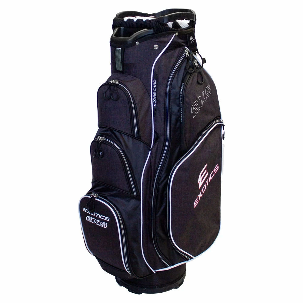 Fit all of your golf clubs and other accessories with the Tour Edge Exotics EXS Xtreme Golf Cart Bag. This bag has a 15-way divider to keep your clubs organized and three molded easy-lift handles which are great for getting to and from the cart. There are multiple pockets great for storing all your needs for a round of golf and an insulated beverage pocket is great for keeping your favorite beverages cool. There is an oversized putter compartment to keep it separate from other clubs to avoid scratching and a rain hood keeps the clubs protected from rainy weather.