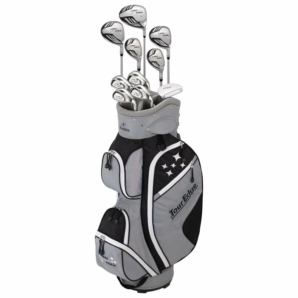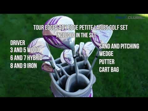 Designed for superior distance and accuracy comes the Tour Edge Lady Edge Golf Set. This set features low profile stainless steel fairway woods that provide a super low center of gravity for high flying wood shots. The stainless steel hybrids are easy to hit and deliver maximum forgiveness on those long iron shots.