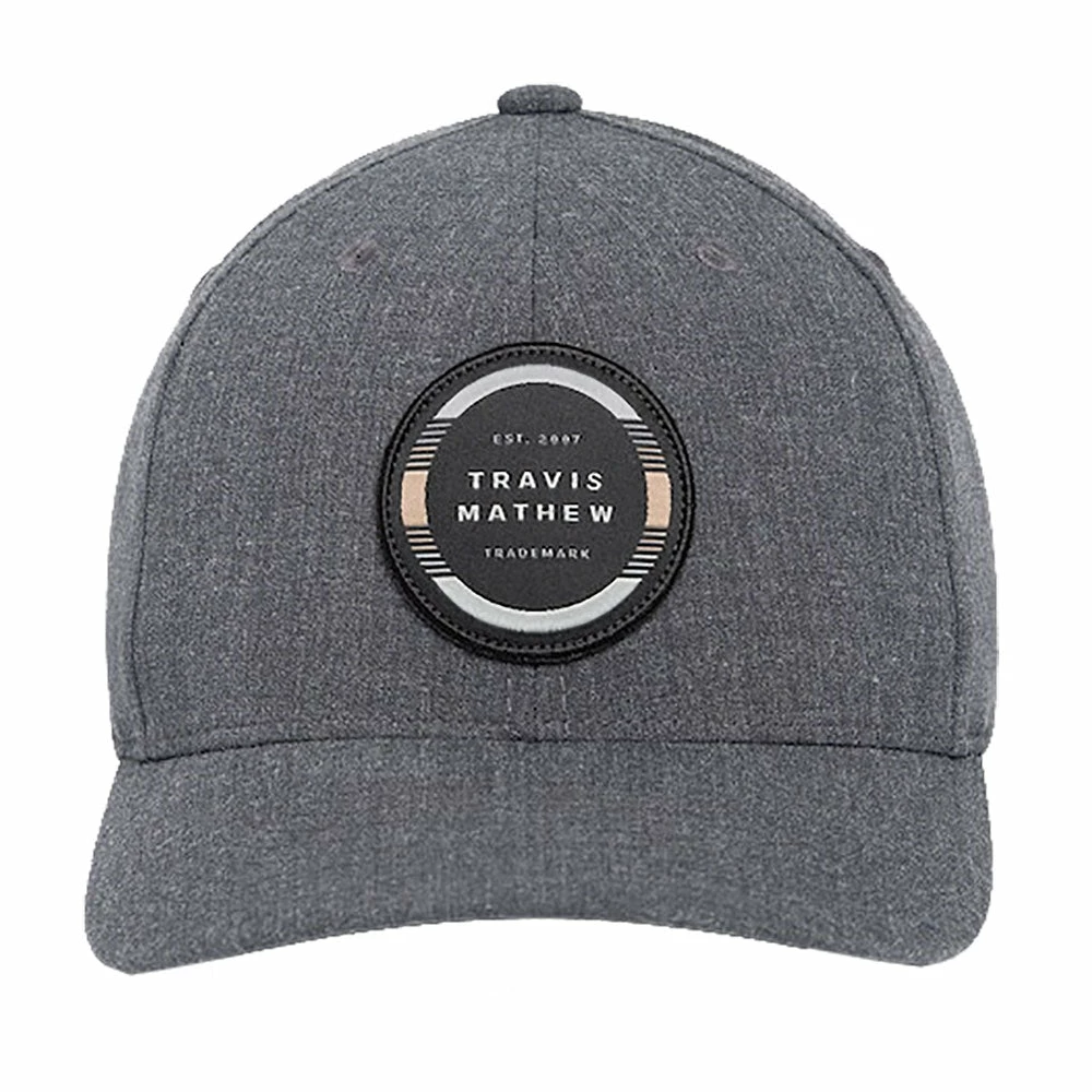 Complete your wardrobe with the TravisMathew Free Roll Mens Golf Hat. This hat is made with an adjustable snapback so you always get just the right fit. It features a logo-driven circular patch created from multi-colored stripes and a stretch sweatband that helps prevent sweat from dripping down your face.