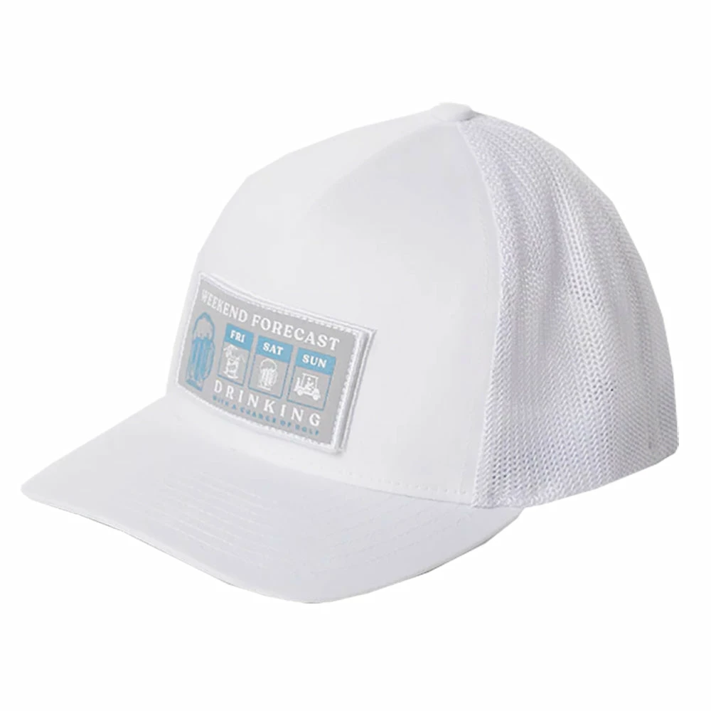 Top off your golf wardrobe in maximum style with the TravisMathew Not Applicable Golf Hat. This humor infused hat features a removable Velcro patch that lets you toggle between the famous TravisMathew golf cart icon and the weekly drinking forecast logo allowing you to show off your fun style. The Not Applicable features Flexfit 110 technology with a stretch sweatband for comfort and an adjustable back closure allows you to get the fit you desire.
