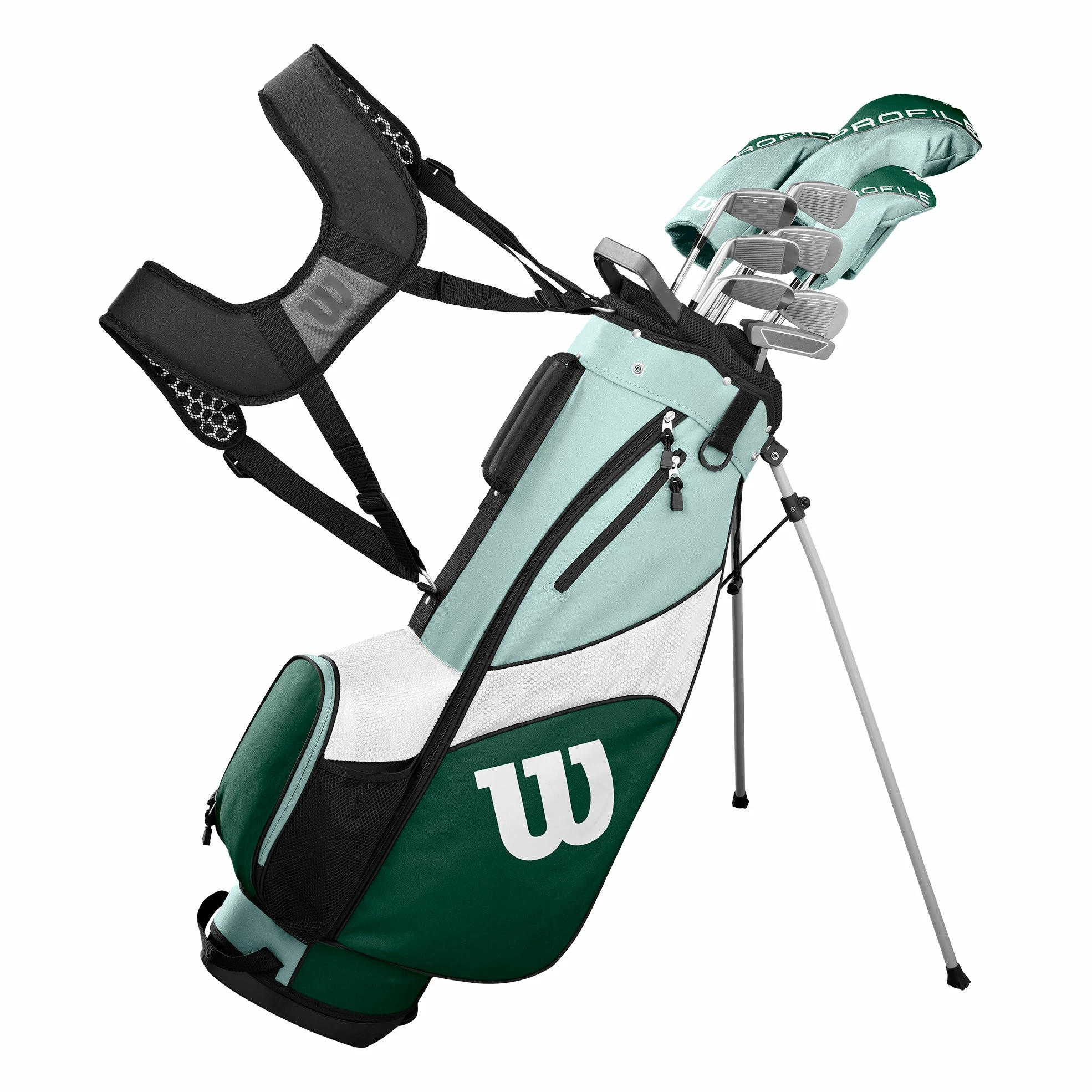The Wilson Profile SGI Complete Golf Set is the only Custom Fit set that comes in a box. This golf set features thirteen options with various lengths, lofts, flexes and grip sizes to perfectly fit beginners and their unique characteristics. These clubs have been designed specifically for women players with lightweight graphite shafts and womens sized soft, all weather grips.